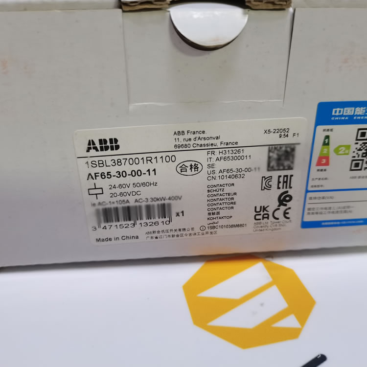 瑞士ABB AF65-30-00-11接觸器(產(chǎn)品編號1SBL387001R1100)是一款性能卓越的3極接觸器,適用于690V IEC或600V UL標準下的各種電機控制需求。該接觸器帶有螺釘端子,能夠控制高達30kW/400V AC或50hp/480V UL的電機,以及高達105A(AC-1)或90A UL的開關(guān)電源電路。其自動對焦技術(shù)和較寬的控制電壓范圍,使得它在各種電壓和頻率下都能表現(xiàn)出色。此外,內(nèi)置的浪涌保護功能為設(shè)備提供了額外的安全保障。