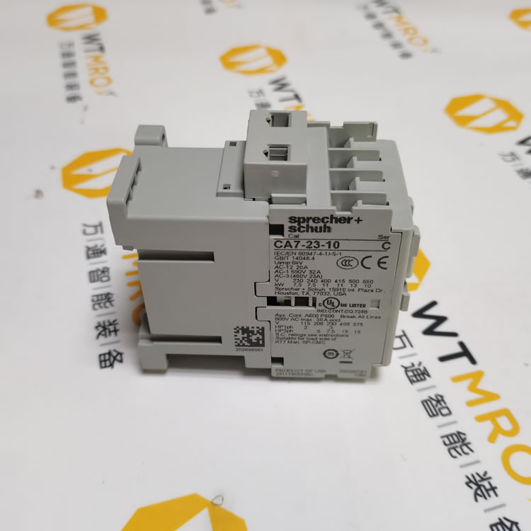 CA7-23-10-380,Sprecher-Schuh,系列CA7,非反向接觸器,CA7型,UL認證,CSA認證,3P,3PH,32A AC-1,23A AC-3,600V,5HP @ 200V,7.5 HP @ 230V,15HP @ 460V,15HP @ 575V,在電源側(cè)配有380-400V 50Hz / 440V 60Hz交流線圈,1個常開輔助觸點,開式,適用于CA7系列電機控制系統(tǒng)。