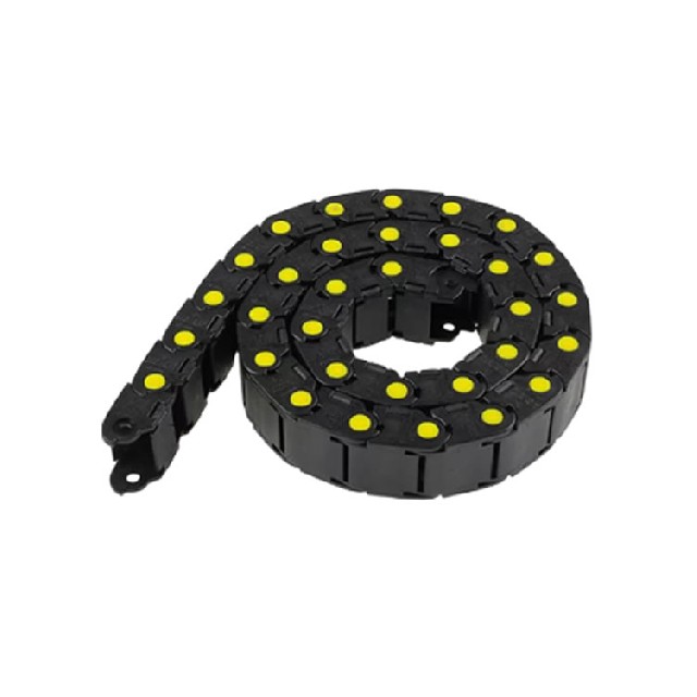 該拖鏈采用優(yōu)質(zhì)材料制造,具有極高的耐磨性和抗拉伸性能,適用于中等彎曲半徑的應用場景,其彎曲輻射為40mm,長度達990mm,內(nèi)高18mm,設計緊湊合理。拖鏈的黑色鏈體配以黃色關節(jié)點,不僅外觀簡潔美觀,更便于識別和維護。